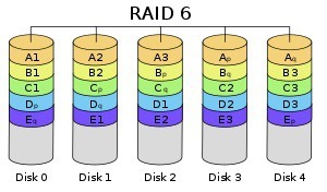 RAID 6의 경우, RAID 5 구성에서 공간 효율을 낮추고 안정성을 높힌 방식이다.
